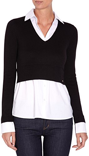 Détails du produitMorgan - Pull - Uni - Col V - Manches longues - Femme - Noir (Noir/Blanc) - FR : 42 (Taille fabricant : L)